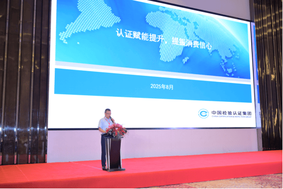 中国查验认证集团华东区域认证核心市场总监孟东润正在会上做了题为《认证赋能提拔!